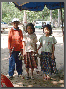 Only about half the school-age children in Cambodia attend school because of their parents poverty and the lack of facilities and teachers. Many children sell souvenirs and cold drinks at the temple sites.