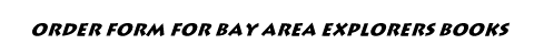 TO ORDER EXPLORING THE CALIFORNIA MISSIONS and EXPLORING THE SOUTHWEST, print and fill out the following form. Mail the completed form with your check or postal money order to: Bay Area Explorers P.O. Box 519 San Ramon, CA 94583-3621 20% discount on orders of five or more copies |